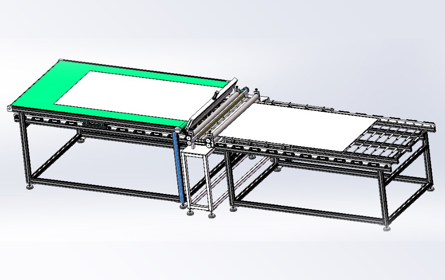 本生產(chǎn)線依據(jù)用戶需求,進(jìn)行“量身”設(shè)計,由層壓前鋪設(shè)傳輸線;通過不同機構(gòu)的傳輸、轉(zhuǎn)運、變向、定位、旋轉(zhuǎn)/釋放實現(xiàn)組件封裝過程的流水化操作,可提高單位組件生產(chǎn)效率。